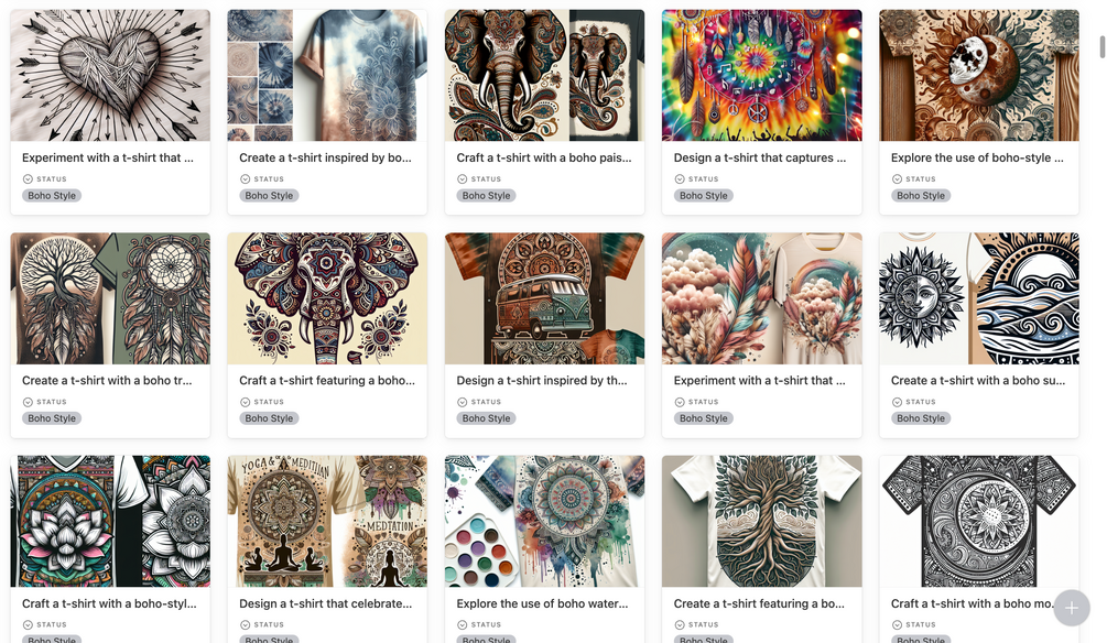 Accède à une base de données contenant plus de 500 prompts pour générer des design de t-shirts afin de les vendre dans un service de Print On Demand